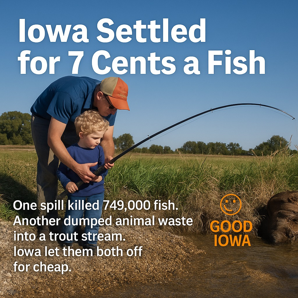 If these companies had been fined the way ordinary Iowans are, the numbers would look very different. At $15 per illegally taken fish—the same amount a resident might pay for exceeding their bag limit—NEW’s penalty would total more than $11.2 million. Agri Star’s discharges, while not tied to a specific fish kill, occurred in a protected trout stream where any significant damage could result in fines, license loss, and even criminal charges for a private citizen.